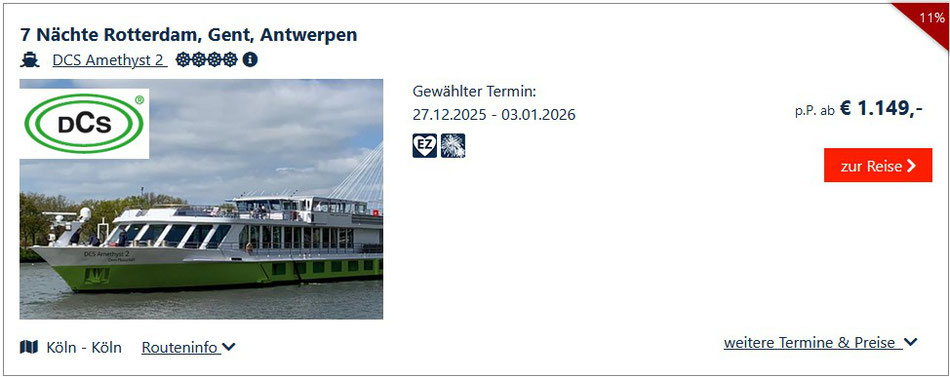 Flusskreuzfahrt Silvester Rhein ab Köln 2025 Rotterdam, Gent, Antwerpen Silvesterreise